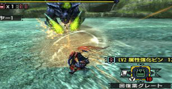 特殊な矢を上空に放つとハンター自身を強化させる薬剤が降り注ぐ。